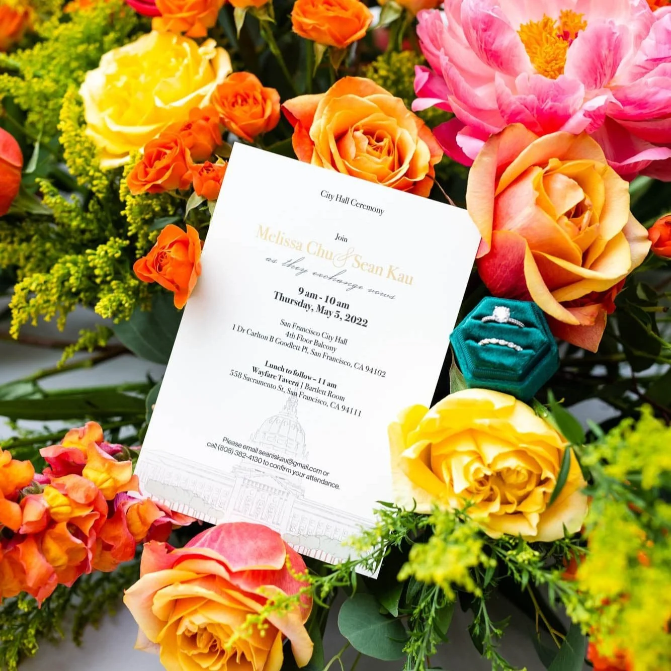 Invitations and illustrations for a San Francisco wedding - inspired by bright & striking florals