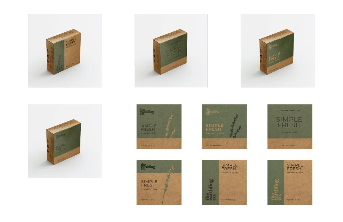 Redesigning the packaging — The packaging needed to retain the same elements that showed the products were natural, eco-friendly, and sustainable. While also elevating the packaging and creating a more eye-catching design overall.